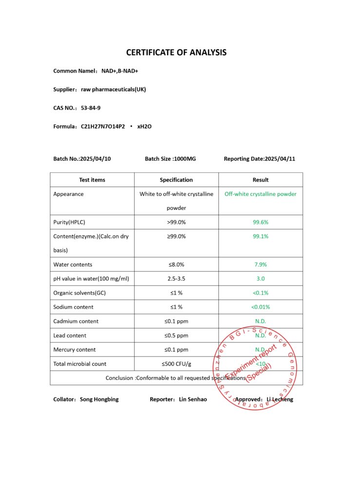 NAD+ (Nicotinamide Adenine Dinucleotide) is a coenzyme found in every cell, essential for energy production, DNA repair, and overall cellular health.